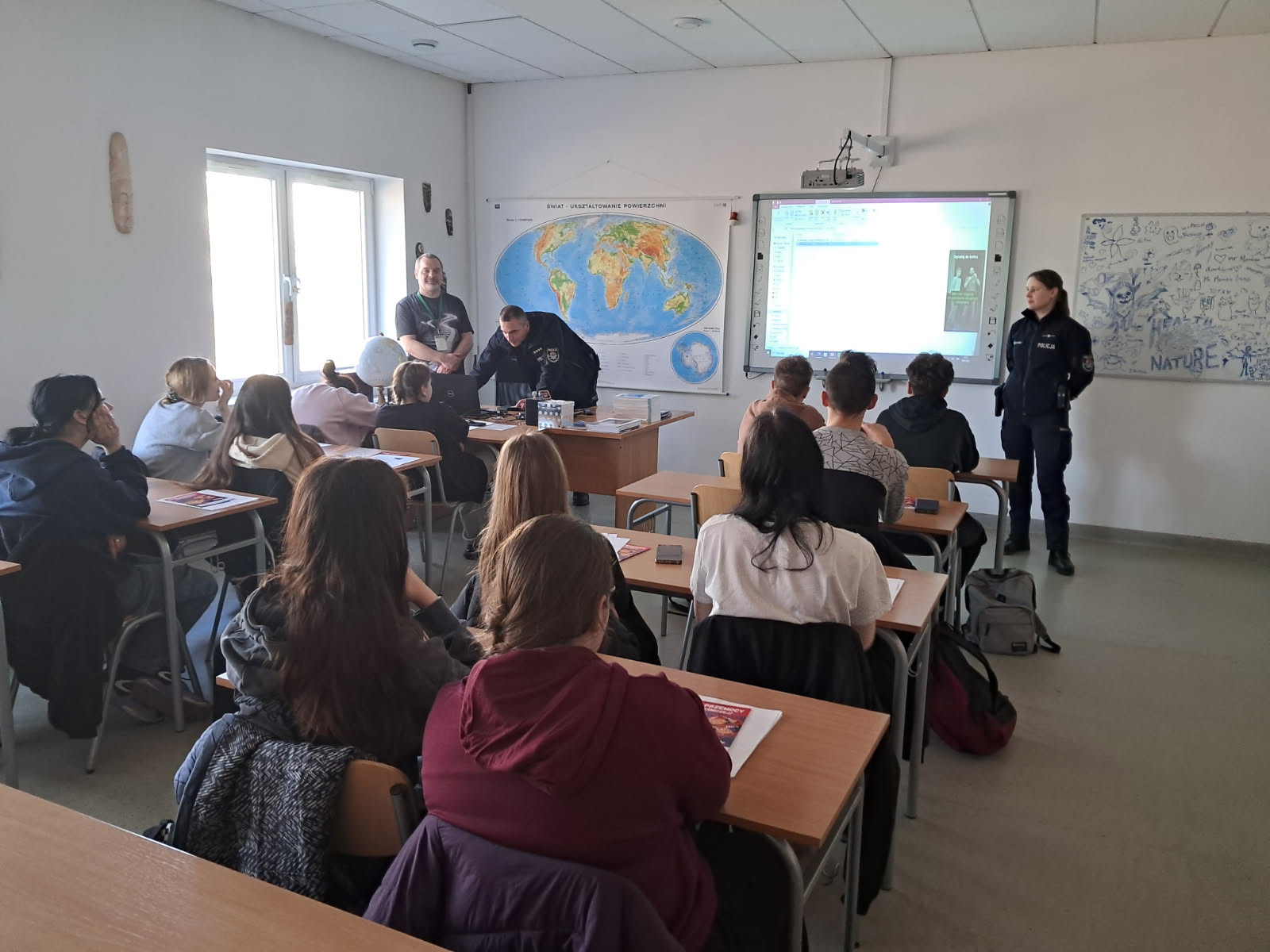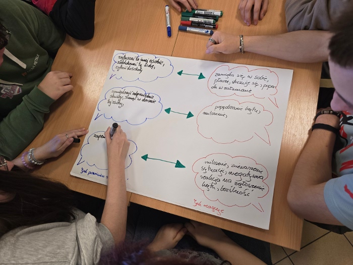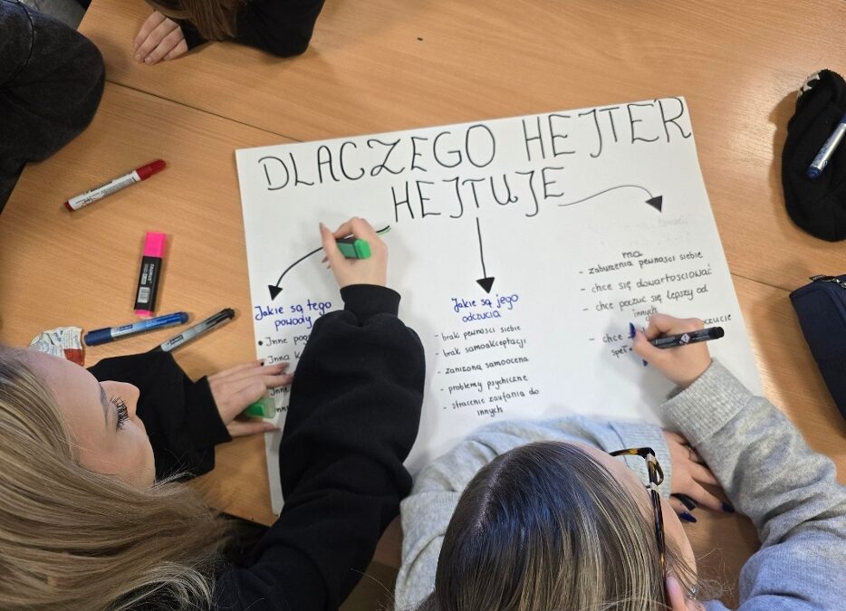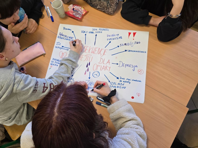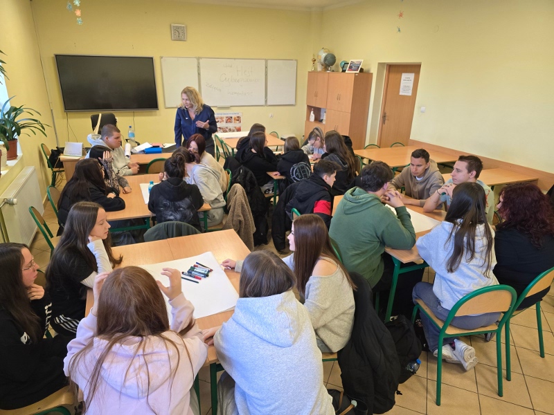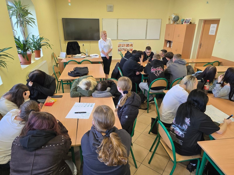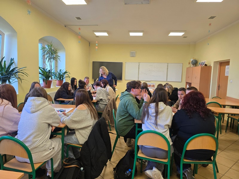 Czwartek 19 marca poświęcono na sesje warsztatów „Higiena cyfrowa – profilaktyka uzależnień”, zrealizowane przez panią Barbarę Witkiewicz z Fundacji „Dbam o mój zasięg”. Ich celem było zwiększenie świadomości uczniów na temat bezpiecznego i świadomego korzystania z technologii oraz wpływu urządzeń na zdrowie psychiczne i fizyczne. Młodzież poznała ryzyka uzależnień behawioralnych oraz sposoby dbania o równowagę między życiem online i offline.