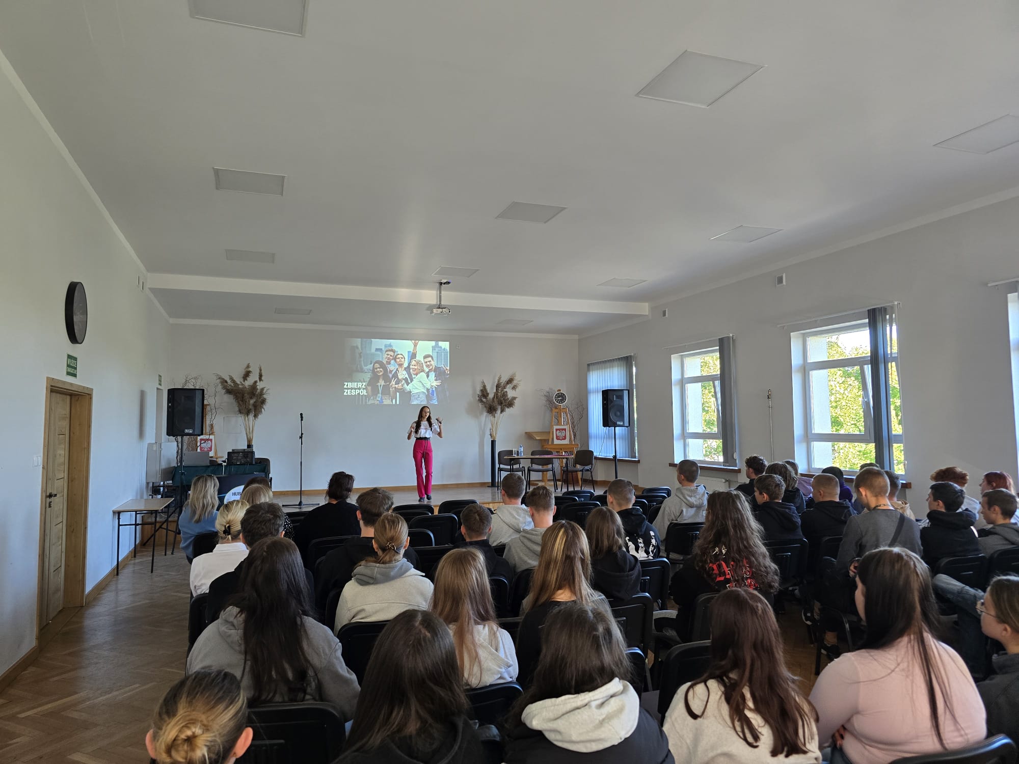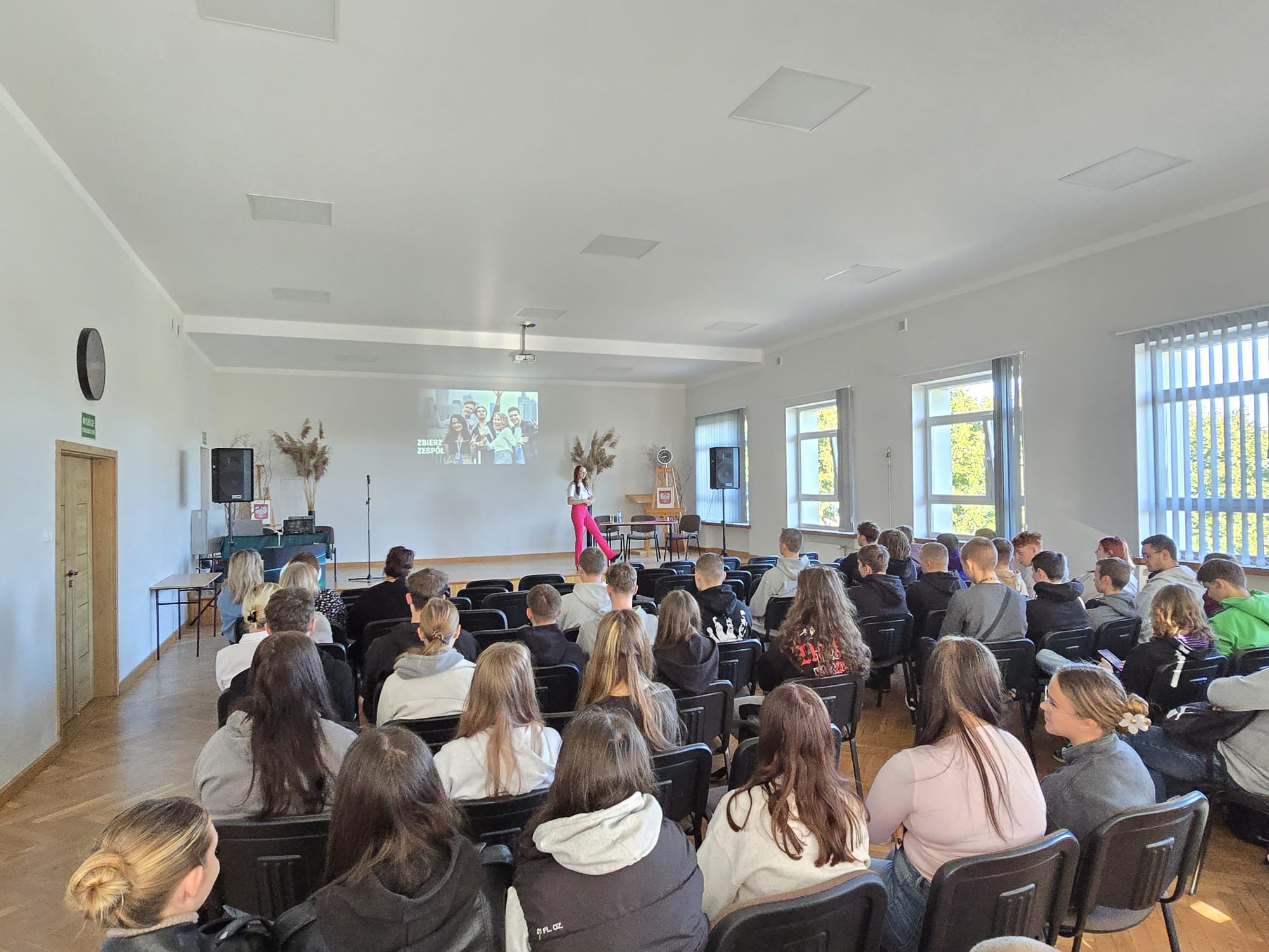 26 września w auli „Hubala” odbyło się spotkanie z Martą Lewandowską – ambasadorką fundacji Zwolnieni z Teorii. W spotkaniu uczestniczyli uczniowie klas II, III i IV technikum.
